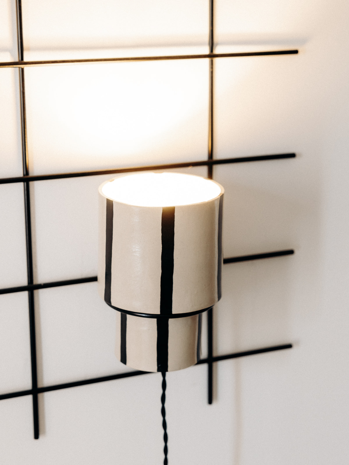 Made of stoneware, a noble and durable ceramic, and specifically designed to fit Gassien accessories, the Zenith lamp offers different lighting moods: