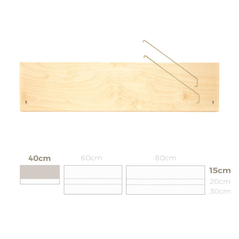 - dans 8 dimensions (longueurs : 40cm, 60cm, 80cm; profondeurs : 15cm, 20cm, 30cm)
